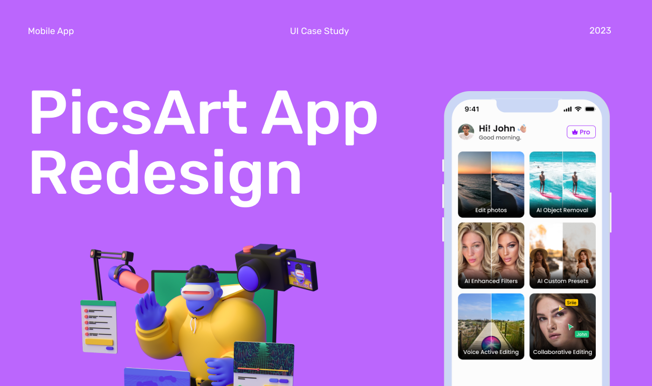 Creating a more user-friendly and visually appealing experience for the PicsArt mobile application. The current navigation lacks clarity, and the icons aren’t as communicative as they could be. The UI redesign aims to make it easier for users to move around and find what they need.