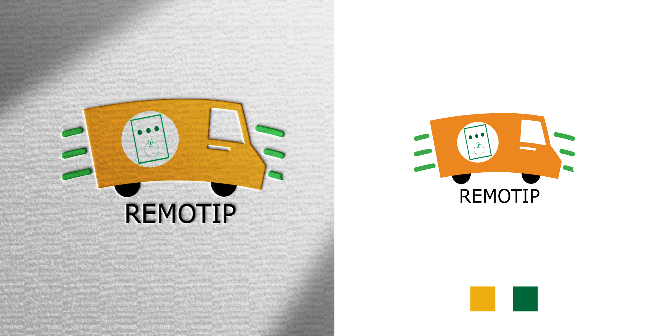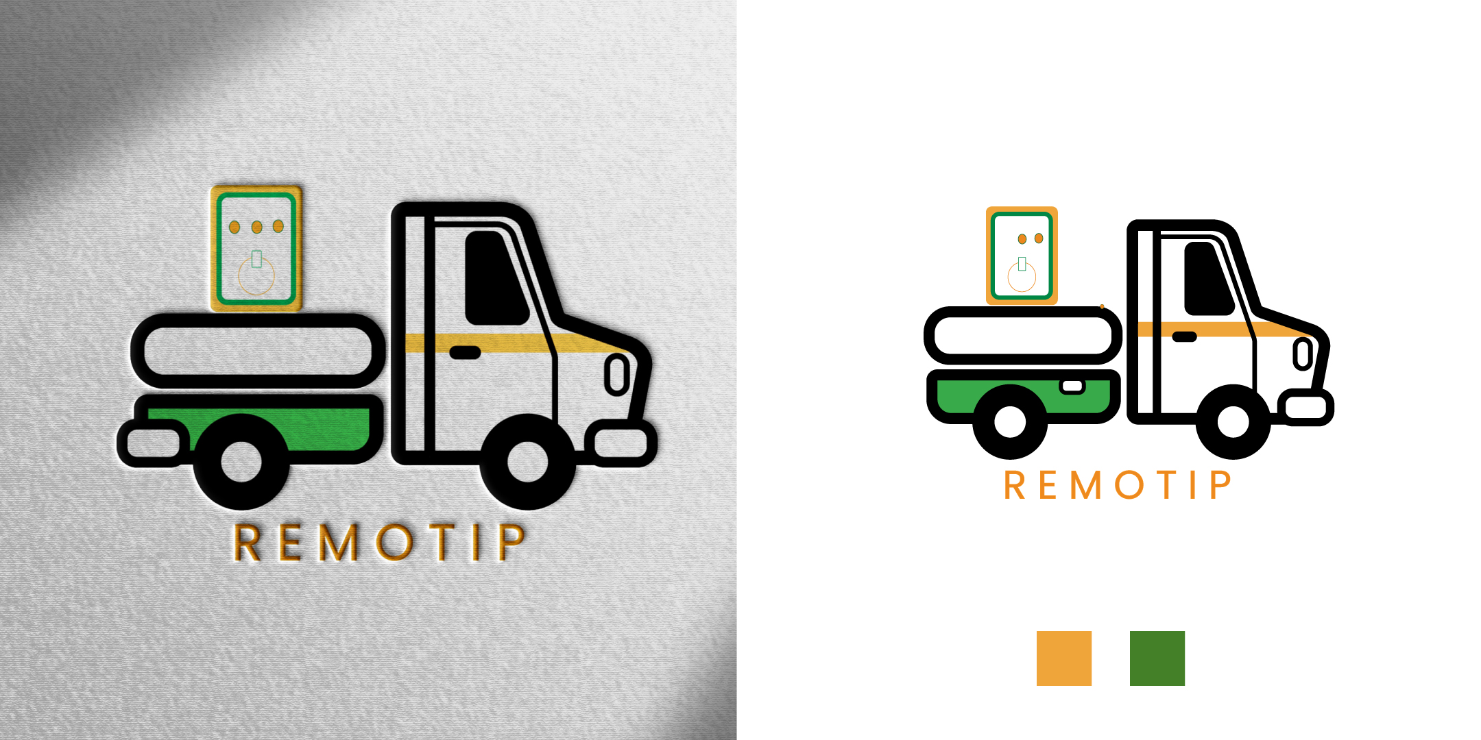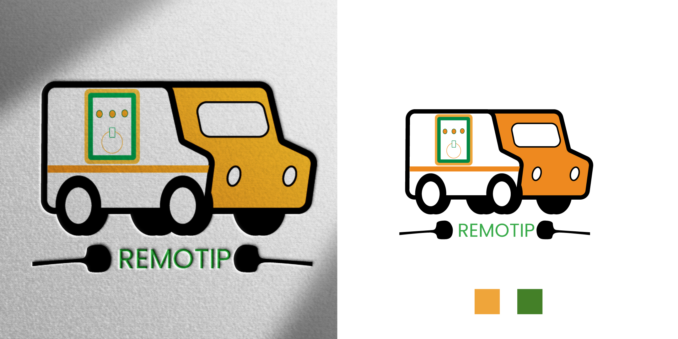 Remotip is a business that provides a tipper remote control for trucks. Most of his clients are farmers / in agriculture, so we discussed colours that reflect farming (greens and golds etc). But this is mostly for trucks so that needs to be built into the logo.